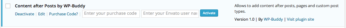 - After that you will be asked to enter your purchase code. Click here if you don’t know where you can find your Envato purchase code. Click the blue “Activate” button.