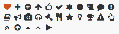 Can be: heart | plus | plus-sign | arrow-up | thumbs-up | ok | asterisk | circle | beer | comment | exclamation-sign | book | bullhorn | camera | headphones | legal | food | star | lightbulb | trophy | warning-sign | hand-up | double-angle-up | circle-arrow-up | caret-up | angle-up | play