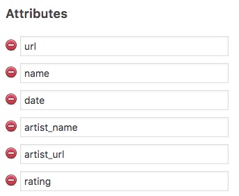 <div itemscope="" itemtype="http://schema.org/MusicRecording"> <span itemprop="name">[name]</span> Length:<meta itemprop="duration" content="PT[minutes]M[seconds]S" />[minutes]:[seconds] - [userplays] plays <meta itemprop="interactionCount" content="UserPlays:[userplays]" /> <a itemprop="url" href="[url]">Read more</a> - <a itemprop="audio" href="[playurl]">Play</a> - <a itemprop="offers" href="[buyurl]">Buy</a> From album: <a itemprop="inAlbum" href="[albumurl]">[albumname]</a> </div>