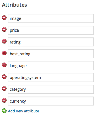 <div itemscope itemtype="http://schema.org/SoftwareApplication"> <meta itemprop="image" content="[image]" /> <meta itemprop="description" content="[content]" /> <span itemprop="offers" itemscope itemtype="http://schema.org/Offer"> <meta itemprop="price" content="[price]" /> <meta itemprop="priceCurrency" content="[currency]" /> </span> <span itemprop="aggregateRating" itemscope itemtype="http://schema.org/AggregateRating"> <meta itemprop="ratingValue" content="[rating]" /> <meta itemprop="bestRating" content="[best_rating]" /> <meta itemprop="worstRating" content="0" /> <meta itemprop="ratingCount" content="1" /> </span> <meta itemprop="inLanguage" content="[language]" /> <meta itemprop="operatingSystem" content="[operatingsystem]" /> <meta itemprop="applicationCategory" content="[category]" /> </div>